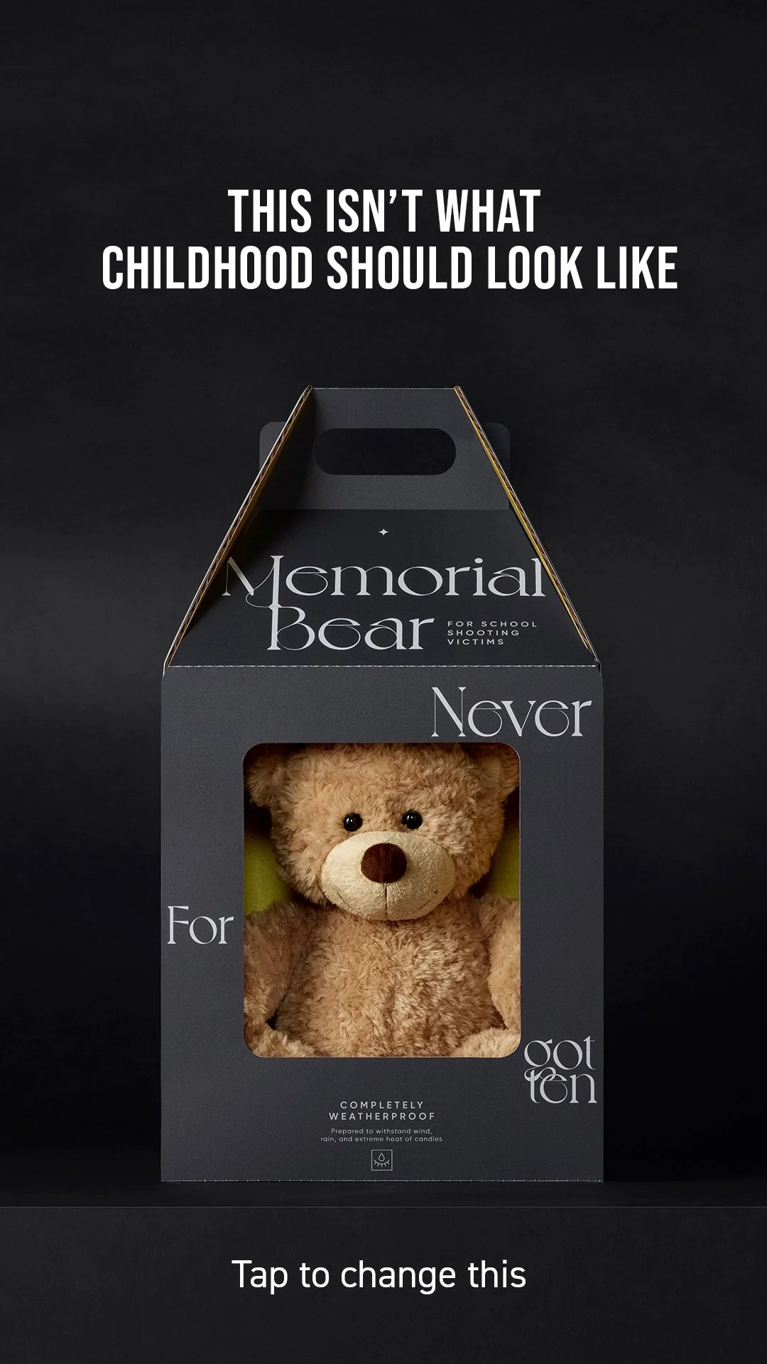 Titled “A Teddy Bear’s Dream” the PSA depicts a teddy bear in a toy store dreaming about a life with a little girl who becomes their best friend. But, instead of this happy future together, the little girl buys the bear for a school shooting shrine, in memory of the victims. By flipping a familiar and innocent childhood memento into an unexpected but brutally true and tragic reality, the campaign reminds us all that we need to help kids be kids again.