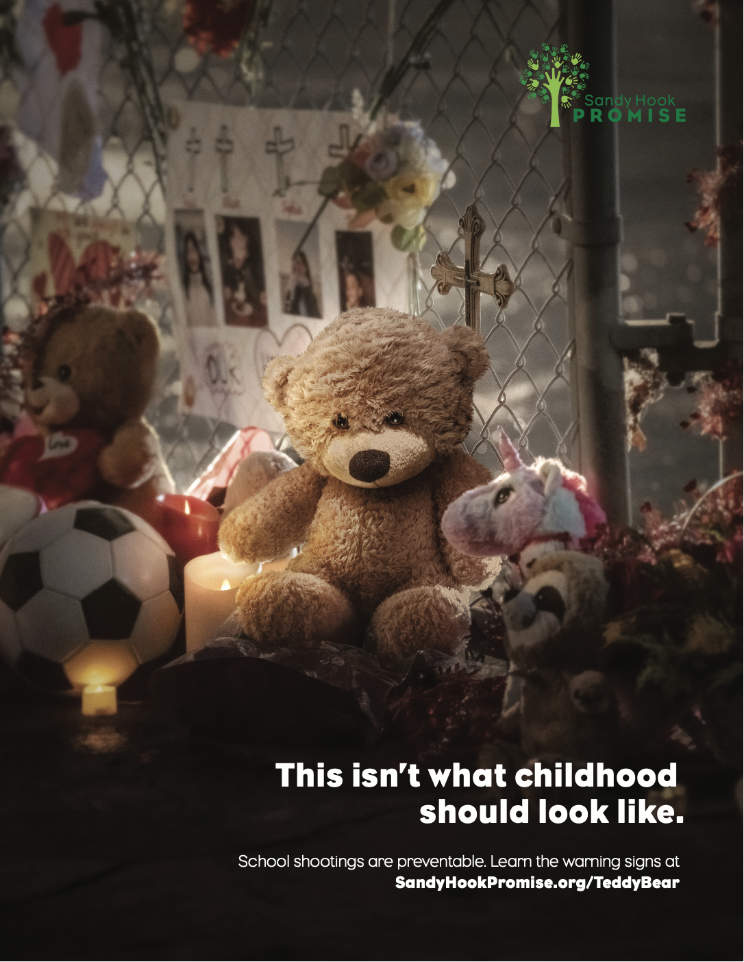 More than 60,000 teddy bears were sent to Newtown, CT after the Sandy Hook tragedy in 2012. Thousands of more teddy bears have been placed into memorials for school shootings since. The latest PSA from Sandy Hook Promise centers on a teddy bear, a well-known symbol of childhood that has come to mean something very different.